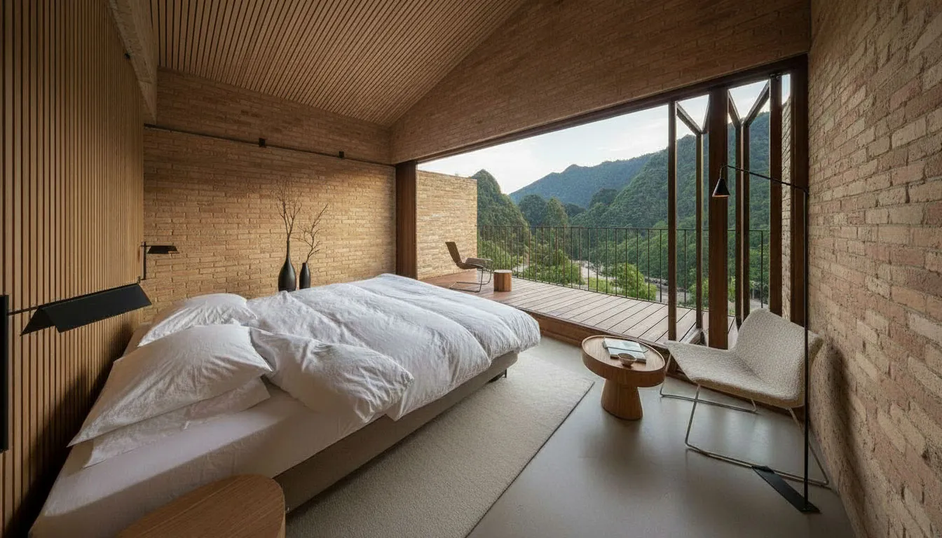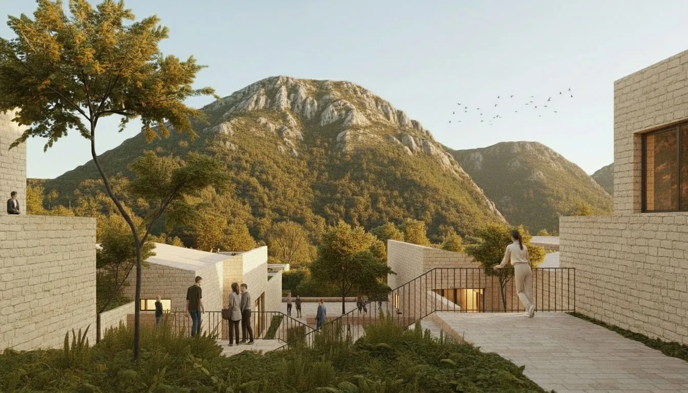 The interior and exterior of the villages are designed to be suitable to the environment. The design is kept simple and calm, promoting a serene lifestyle connected to nature. The houses are oriented to provide the best views towards the karst mountain landscape. Dealing with the hilly terrain, whilst providing comfort, safety and accessibility has been a mayor challenge during the design stages.