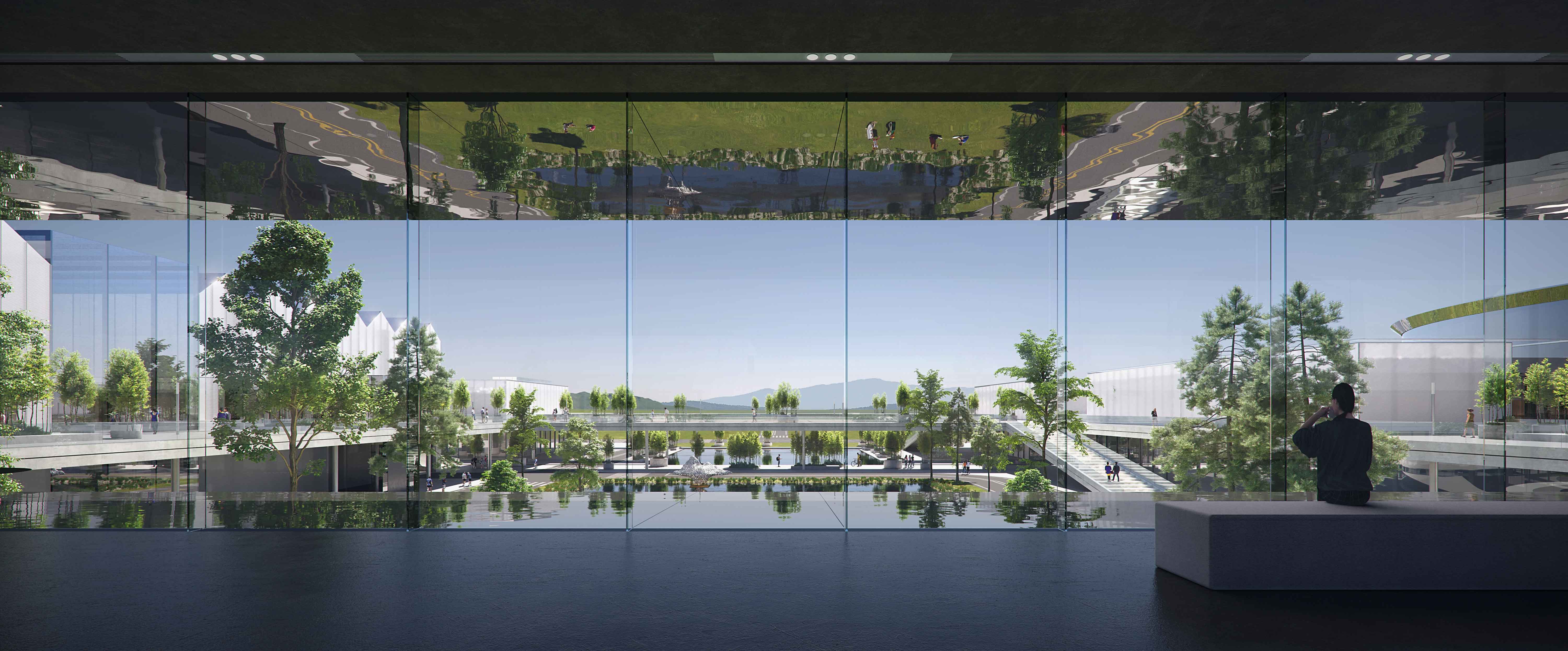 Superimpose proposed a green axis concept for the Net Zero Industrial Park located in the grasslands of Inner Mongolia. The office was invited to participate in the tender for an extension of 70,000 square meters to the mixed use research and development masterplan of the park, originally designed by the masterplanning architect. The site is situated approximately 21 kilometers west of the city of Ordos.