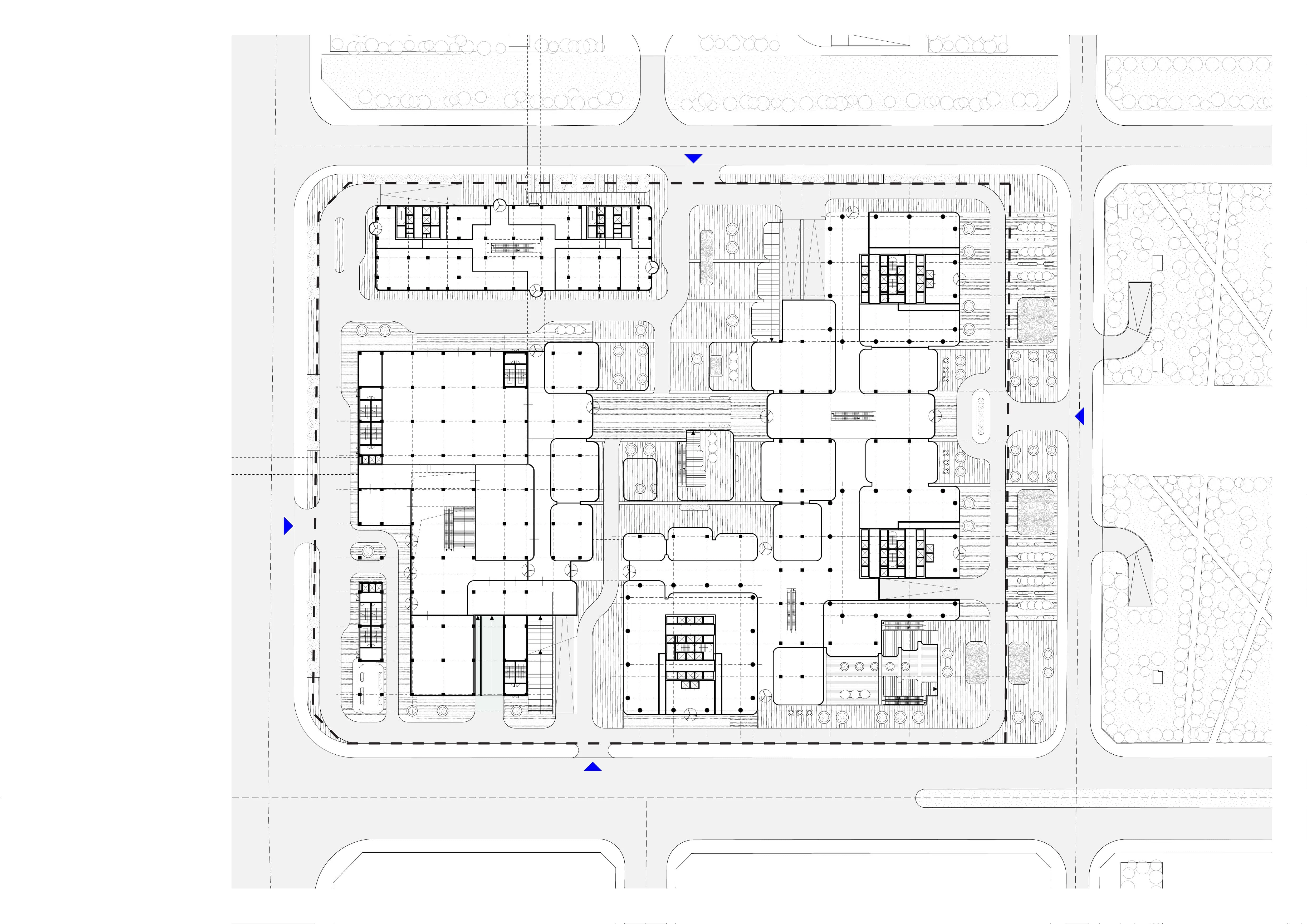 Inside the pleasant and well-shaded courtyard, which is the heart of the development, one can clearly notice the concept of the ‘3 ground floors’. Dueto large floor opening, the basement, ground floor and second floor all feel like the ground floor. Superimpose recognized the importance of fitting this project within the larger city-scale masterplan and provided functions at all 4 sides that form programmatic relation to the adjacent sites. Bridges are being used to enhance those relations.
