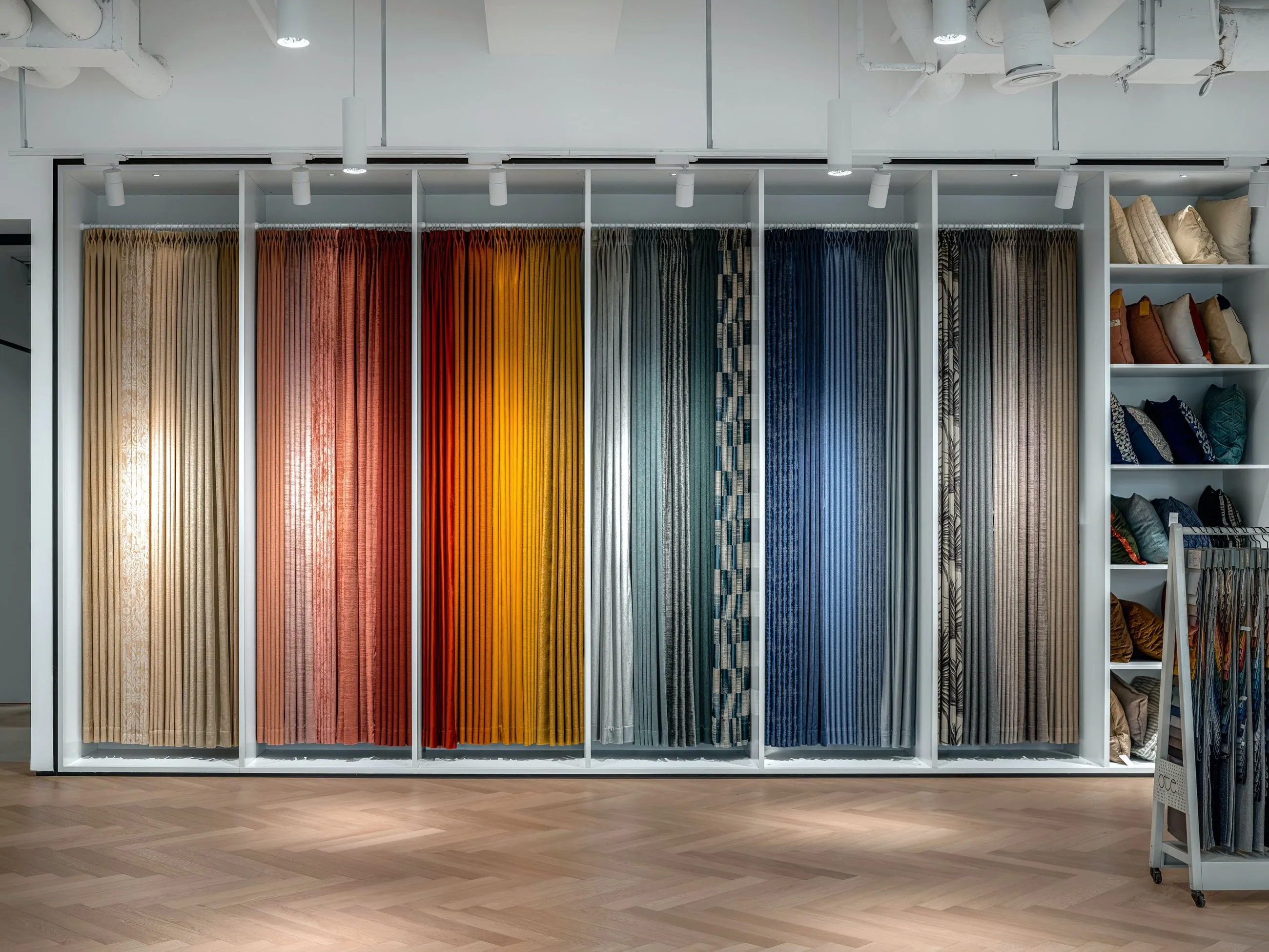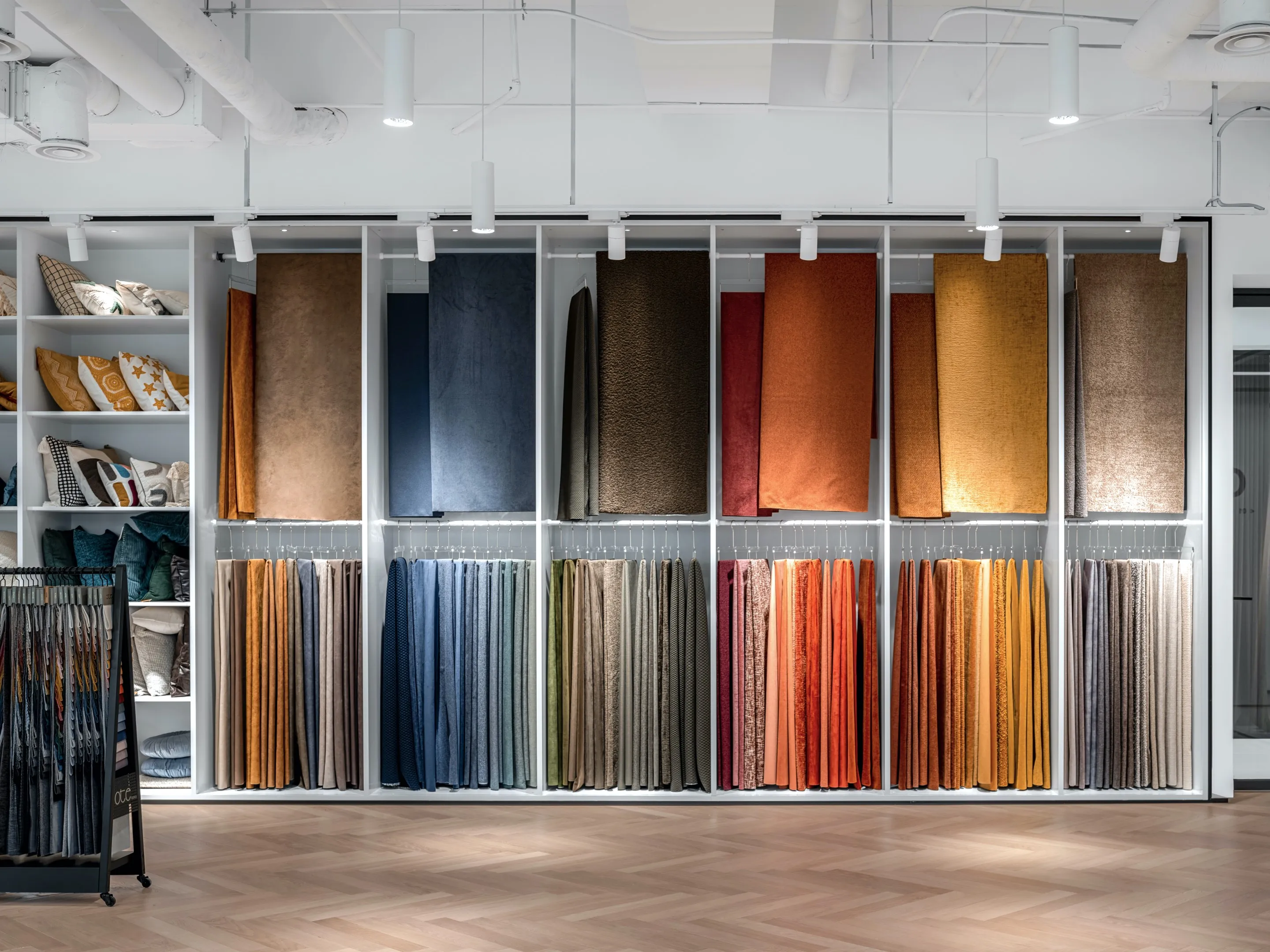 Superimpose designed a smart plan layout working hand in hand with aninnovative system of cabinets serving as separator between space, storage space, kitchen, and product display of the curtains and other fabrics. In fact, the entire space was becoming an experience center.