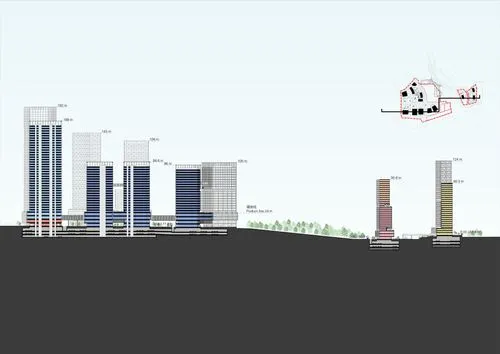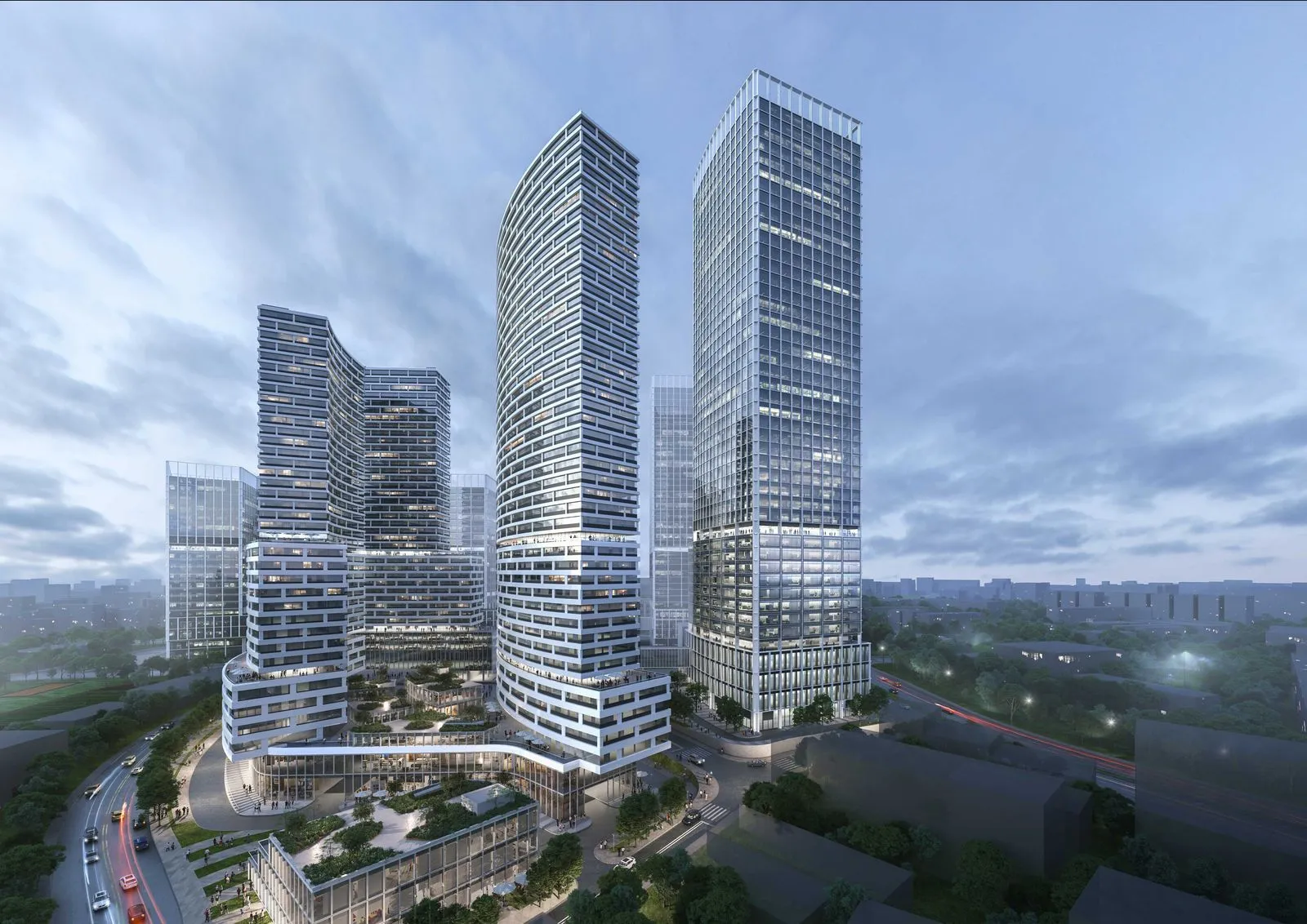 The project is designed to become an optimized TOD development. A 24-hour accessible circulation loop connects every plot seamlessly to the subway and bus station. Spacious sunken courtyards along the Campus axis bring footfall to the basement. On the second floor, a network of bridges connects the different sites efficiently. In order provide a variety of floor plates for different types of tenants and to break down the massing of the towers, they are segmented in 3 volumes with altering depth: the base, the middle and the top. The deep base offers a lot of space for factories. The middle zone offers the ideal floor plate for R&D companies. The top of the tower is designed as a standard grade A office floor plate.