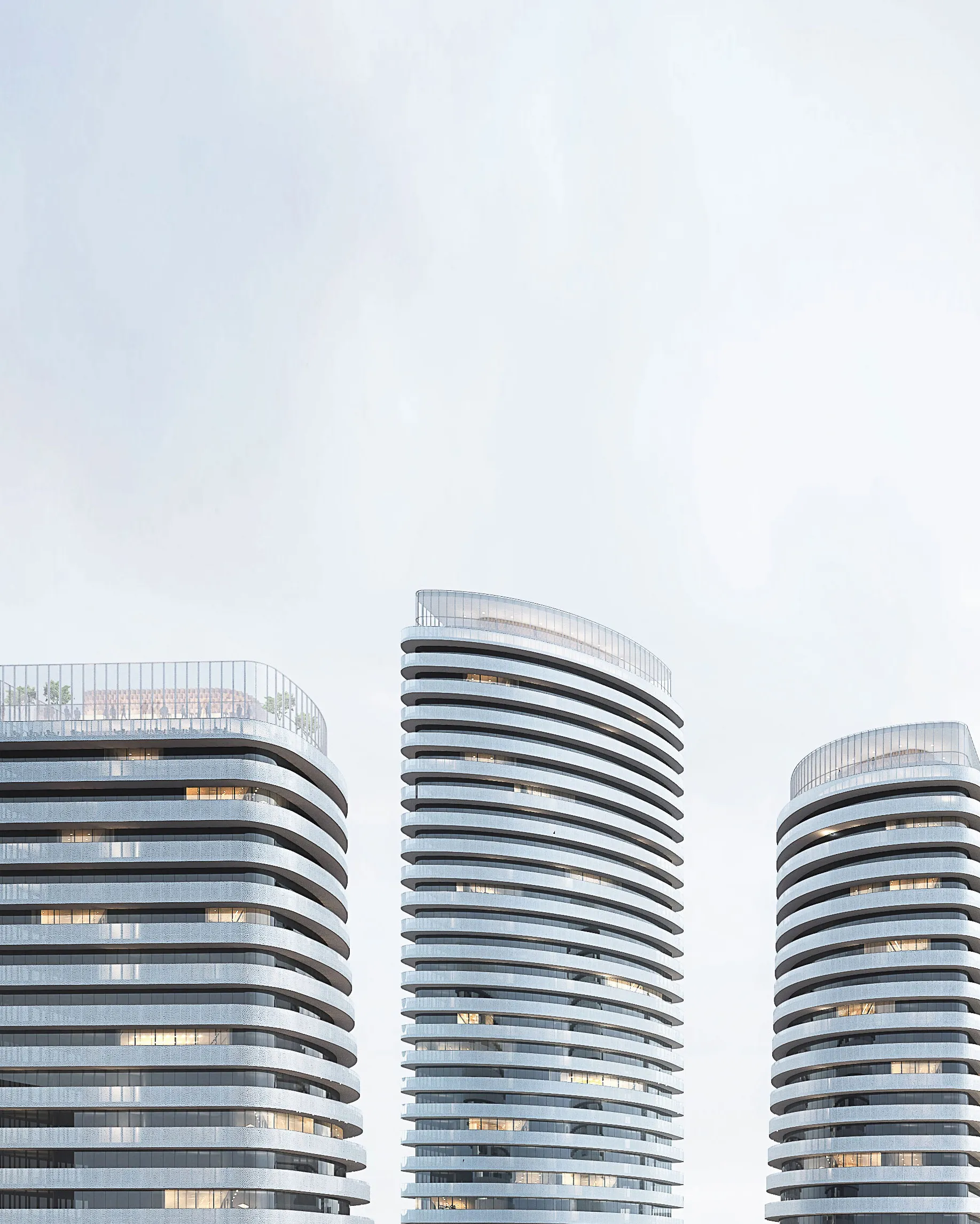 Superimpose designed the ‘Phnom Penh Curve’ to be a reflectionand re-interpretation of its direct urban surroundings. Local architectural characteristic such as the curved balconies, façade perforations forventilation, the integration of green, and attention to human scale are reinterpreted and integrated in the design. The site constraints allowed for 100,000 square meter of floor area. From massing studies Superimpose concluded that in order to respect the surroundings, it would be better to build less and lower than allowed.